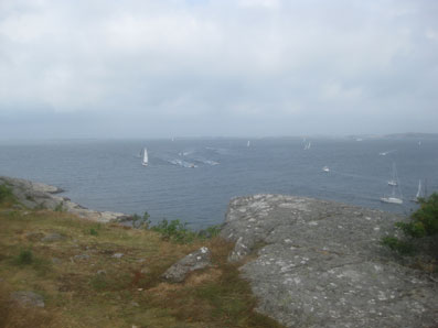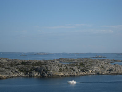 Utsikt åt väster från Utkäften. Det går en motorväg utanför Marstrand! |