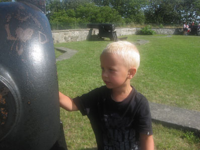 Jacob besiktigar kanonerna på Carlstens fästning. |
