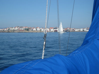 Hårdvindsegling i all ära, men 5 m/s slör är kaptenens favorit. Klädesholmen syns i bakgrunden. |