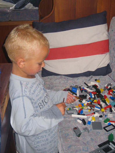 Vi hade en regnig dag. Det var andra dagen på Åstol. Tur att leksakerna var med! |