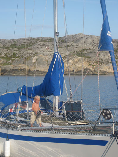 Seglingen till Åstol var en riktig höjdare. Fint väder. Lätta vindar. Perfekt familjesegling. Kapten tog en omväg förbi Klädesholmen och gick i den smala rännan via Rönnäng. Härligt! |