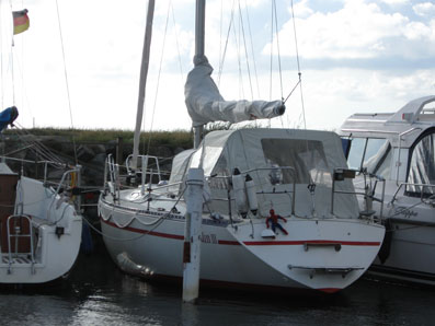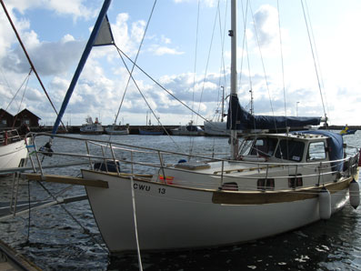 Antalet större segelbåtar i Glommen ökar markant numera. Här ligger Surfer, en Trio 92.