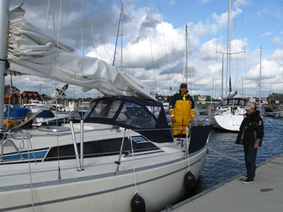 En Maxi 999 från Malmö kom in och gjorde en snygg tilläggning vid pontonen. Skepparn och hans Amiral ställde villigt upp för kameran!