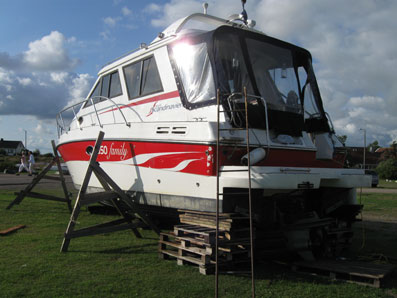 En annan båt som fått motorhaveri och måste byta drev lyftes upp för någon dag sedan.