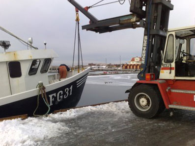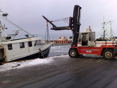 Lyngskärs stäv lyftes så att man kunde komma åt hålet. |