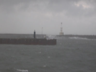 | Det ser ödesmättat ut när stormens dån blandas med stora mängder regn som suddar ut konturerna av kajer och pirar medan skymningen så sakta lägger sig över alltsammans. Hur ska det se ut imorgon? |