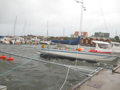 Det var ju inte orkan som väl var men det var imponerande ändå. Det dånade i luften och båtarna ryckte och slet i sina förtöjningar. Det är inte första gången som en förutsagd kuling har blivit något mycket mera.
