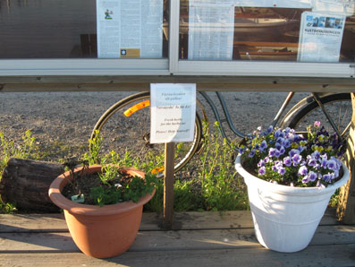Blomsterprakt till höger och till vänster färska kryddor till grillen!