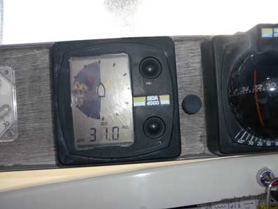 Många vindbyar var över 30 m/s, här visas 31.0 och då börjar vi närma oss orkan.